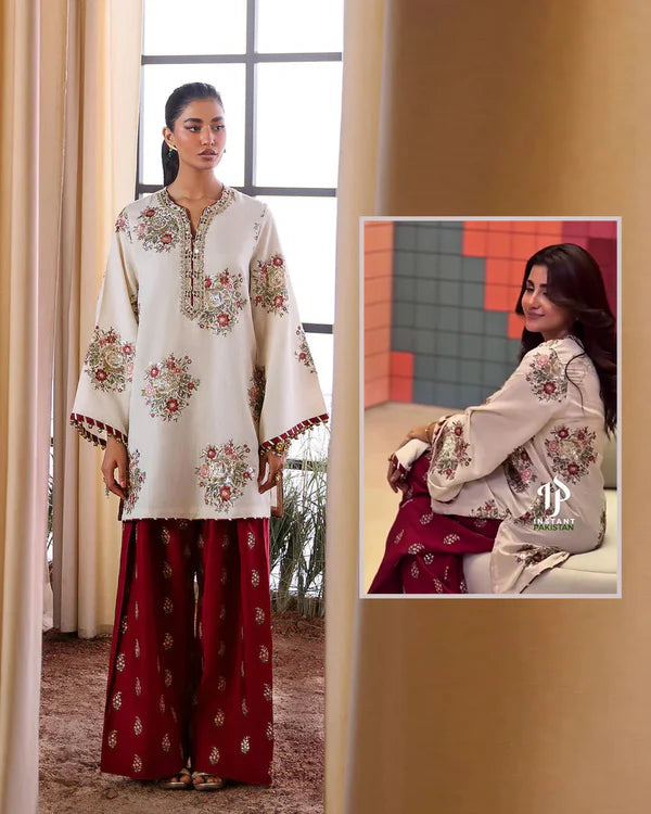 Ethnic Luxury Embroidered Formal Wedding Collection-Off White & Reddish Maroon