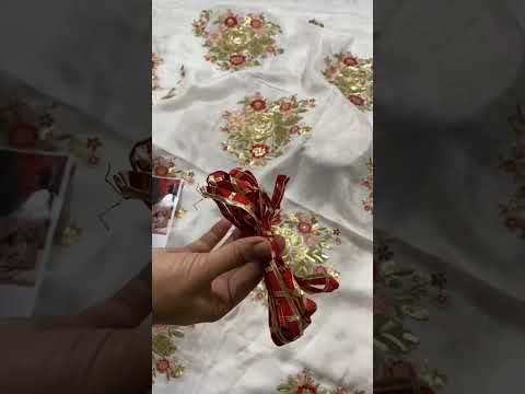 Organza dupatta with 4-sided embroidery and gota piping finish