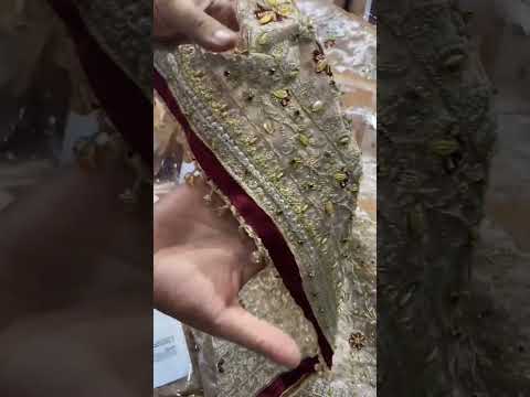 Sleeve border enhanced with handworked moti jhalar lace