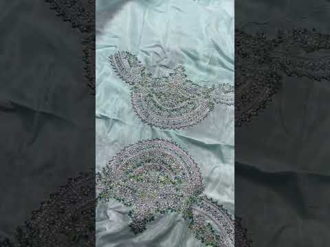 Embroidered organza dupatta with 4-sided borders and sequins tassels