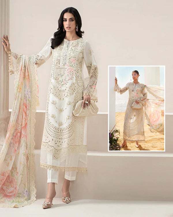 Maria.B Cotton Luxury Chikankri Forml Collection- Off White